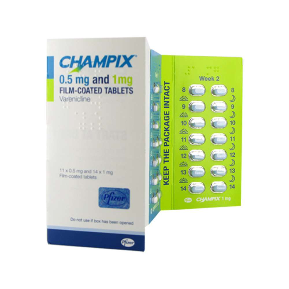 - Champix 0,5mg cena: 84.38€ - 2058.43€.